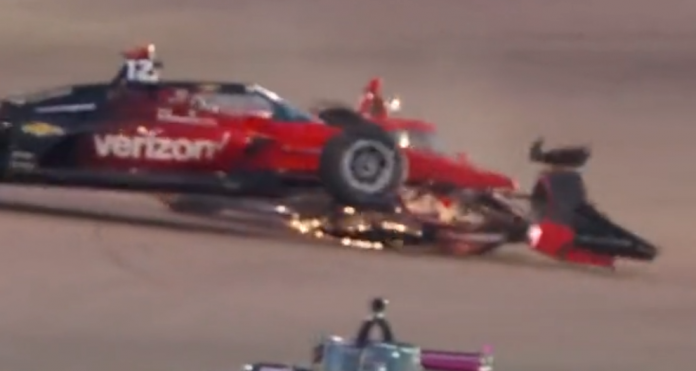 As the No. 12 Verizon IndyCar came out of the wall it would make contact with the No. 8 driven by Marcus Ericsson who was an innocent bystander in the incident.
