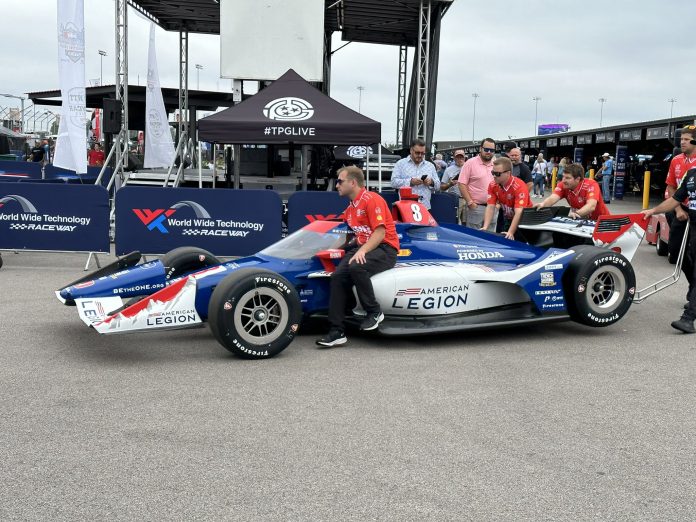 In putting together Ericsson’s car the team had to take parts what parts they could get and the results eye catching. Crew members from all four of Chip Ganassi Racing’s teams participated in getting the machine ready for today’s race at World Wide Technology Raceway.